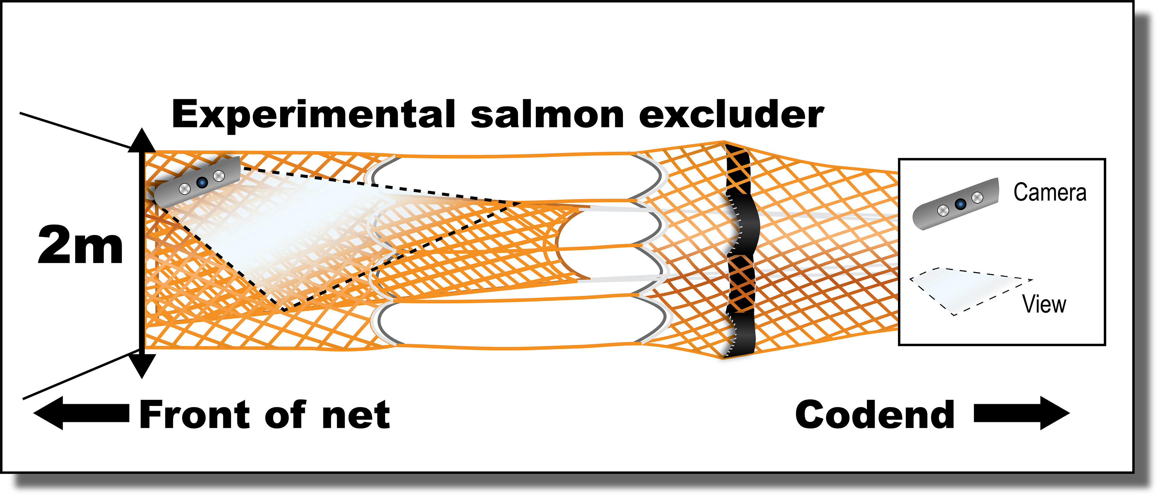 I developed a scientific visualization explaining how an AI-powered salmon excluder helps reduce bycatch in the pollock fishery. Working from a research paper, a rough concept sketch, and a draft web story, I designed a clear narrative that shows how the experimental net and camera system allow certain species to swim free while others are selectively retained. The animation illustrated how the trawl and camera move together underwater, using light and particle effects to simulate the environment. I collaborated with scientists and communicators to ensure accuracy while keeping the visuals engaging and accessible. The project was nearly complete before funding was cut, requiring only sound design, voice-over, and a few seconds of field footage for final delivery. My final assets included a polished web illustration and a full motion piece ready for public release.