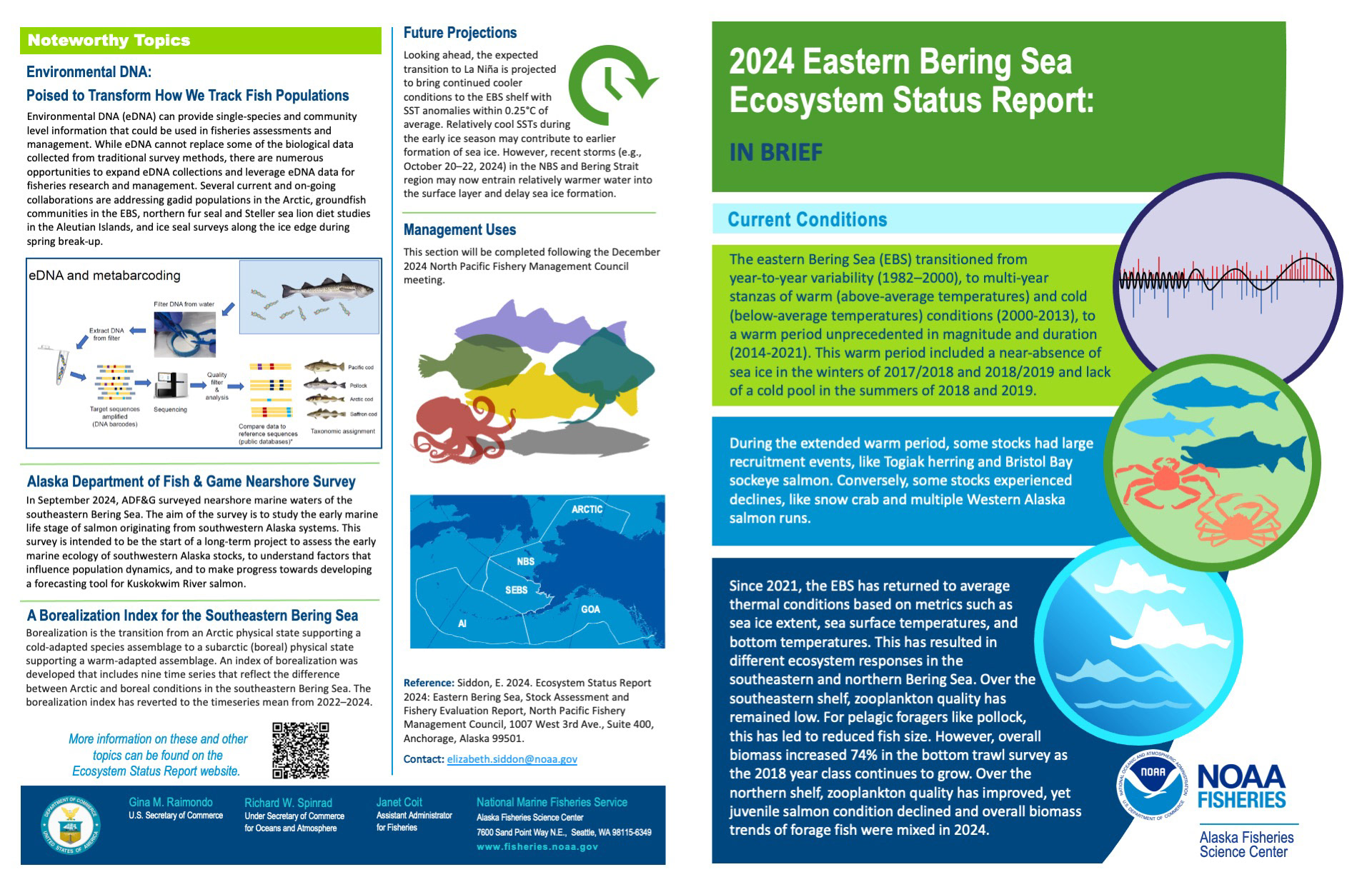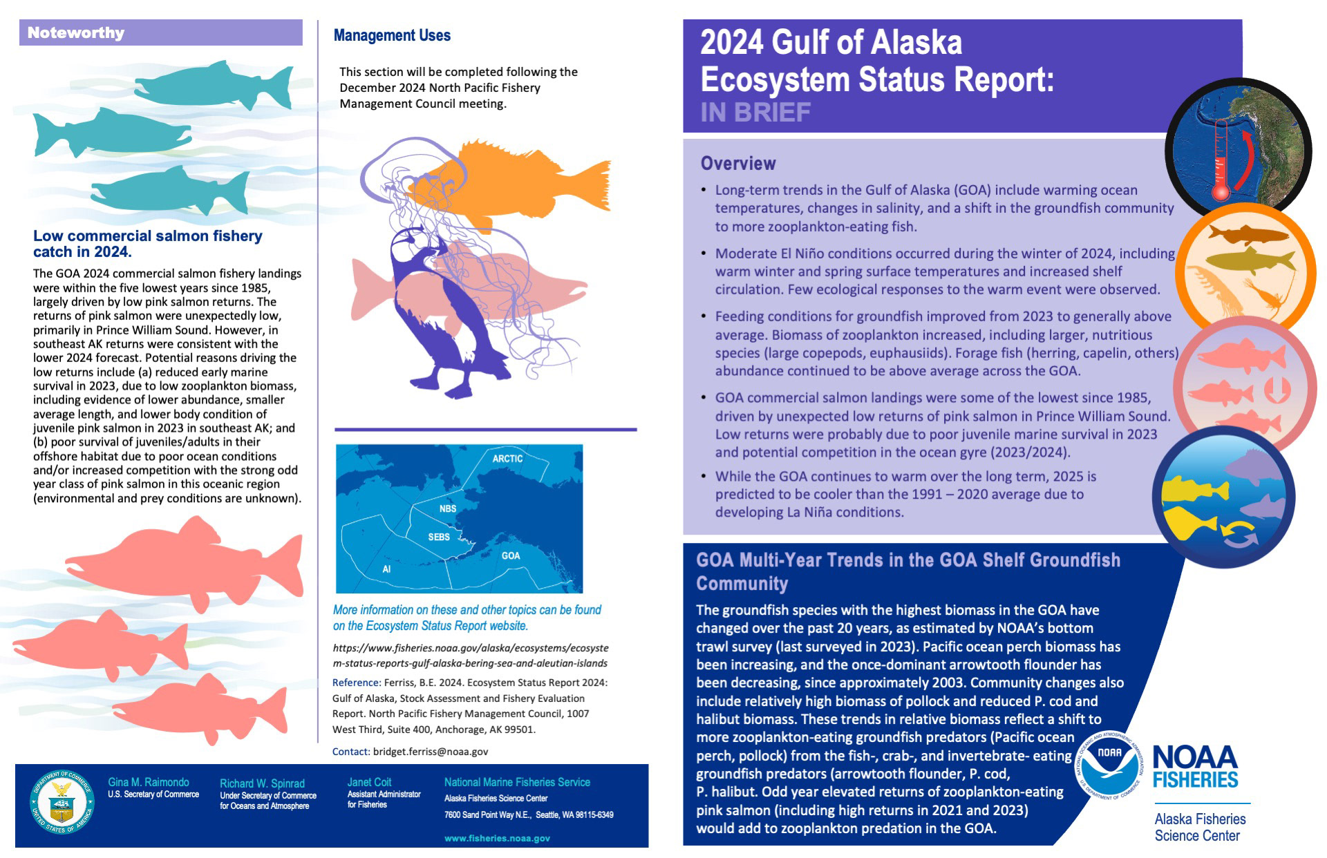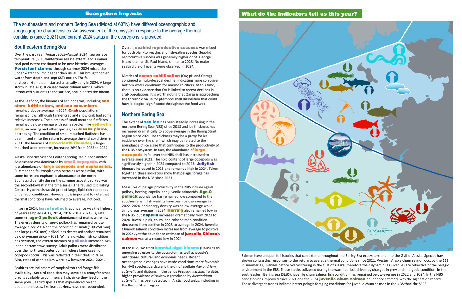 The Ecosystem status reports are part of presentations for Alaska fisheries council meetings and economic/marine government documentation. I collaborated with biologists from each region to create icons and a layout design for the reports.