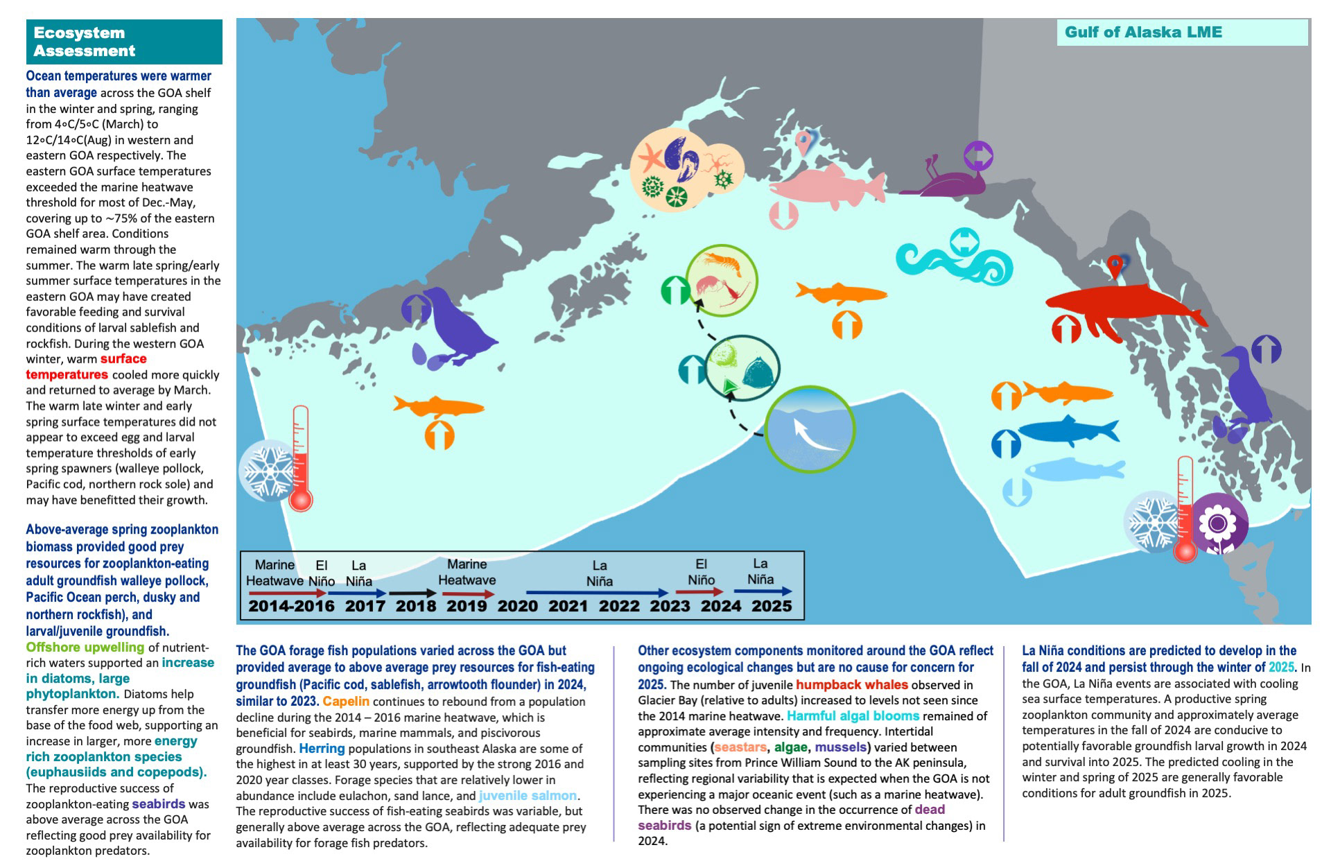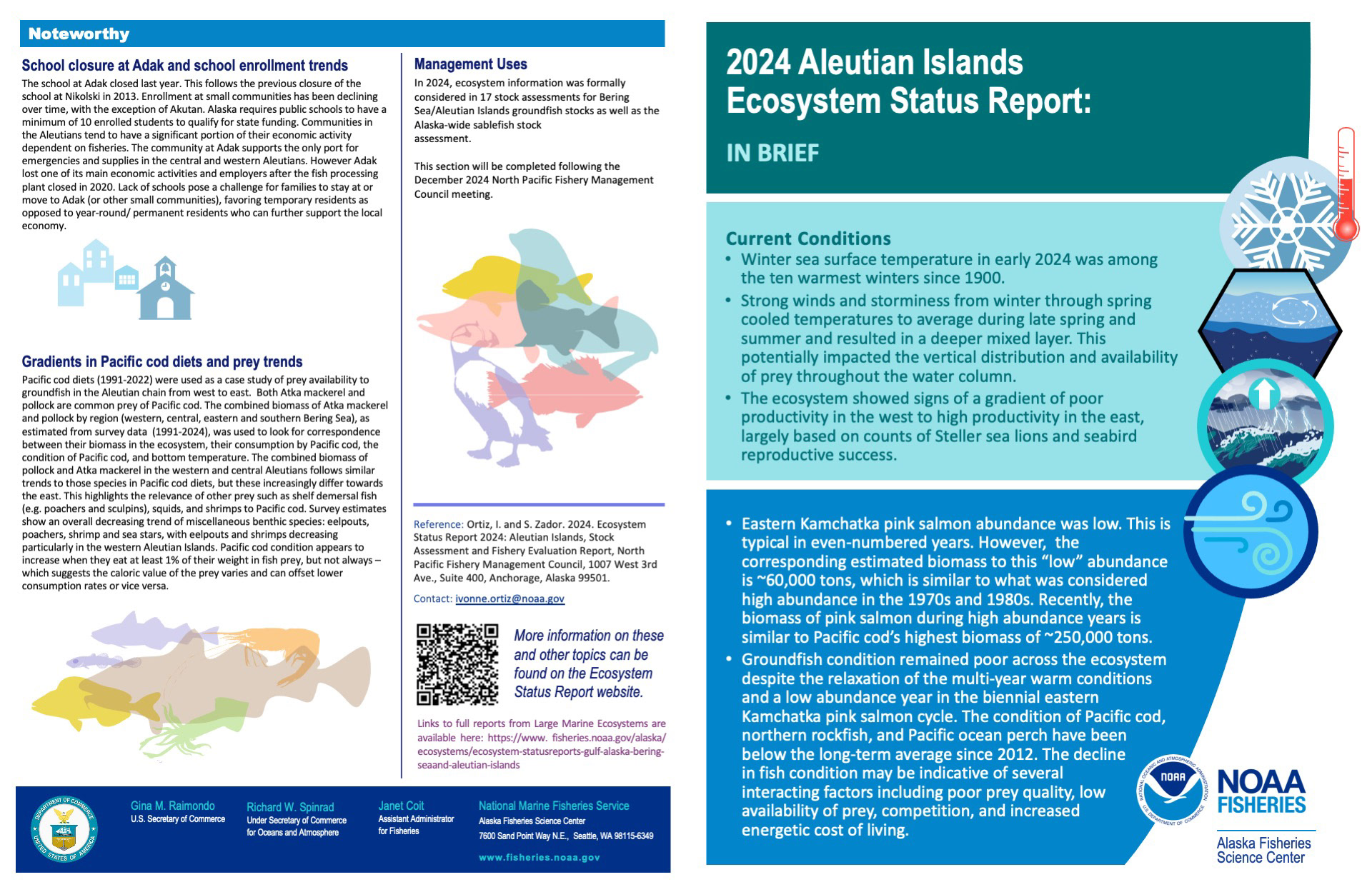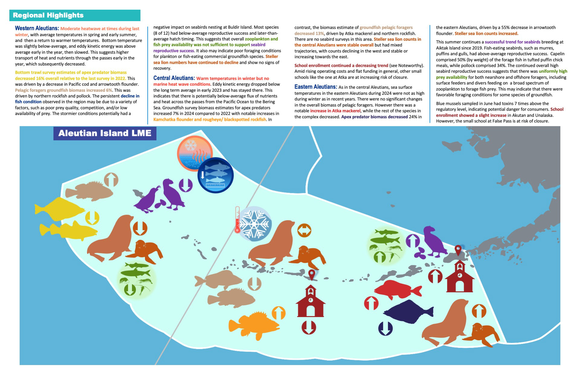 The Ecosystem status reports are part of presentations for Alaska fisheries council meetings and economic/marine government documentation. I collaborated with biologists from each region to create icons and a layout design for the reports.