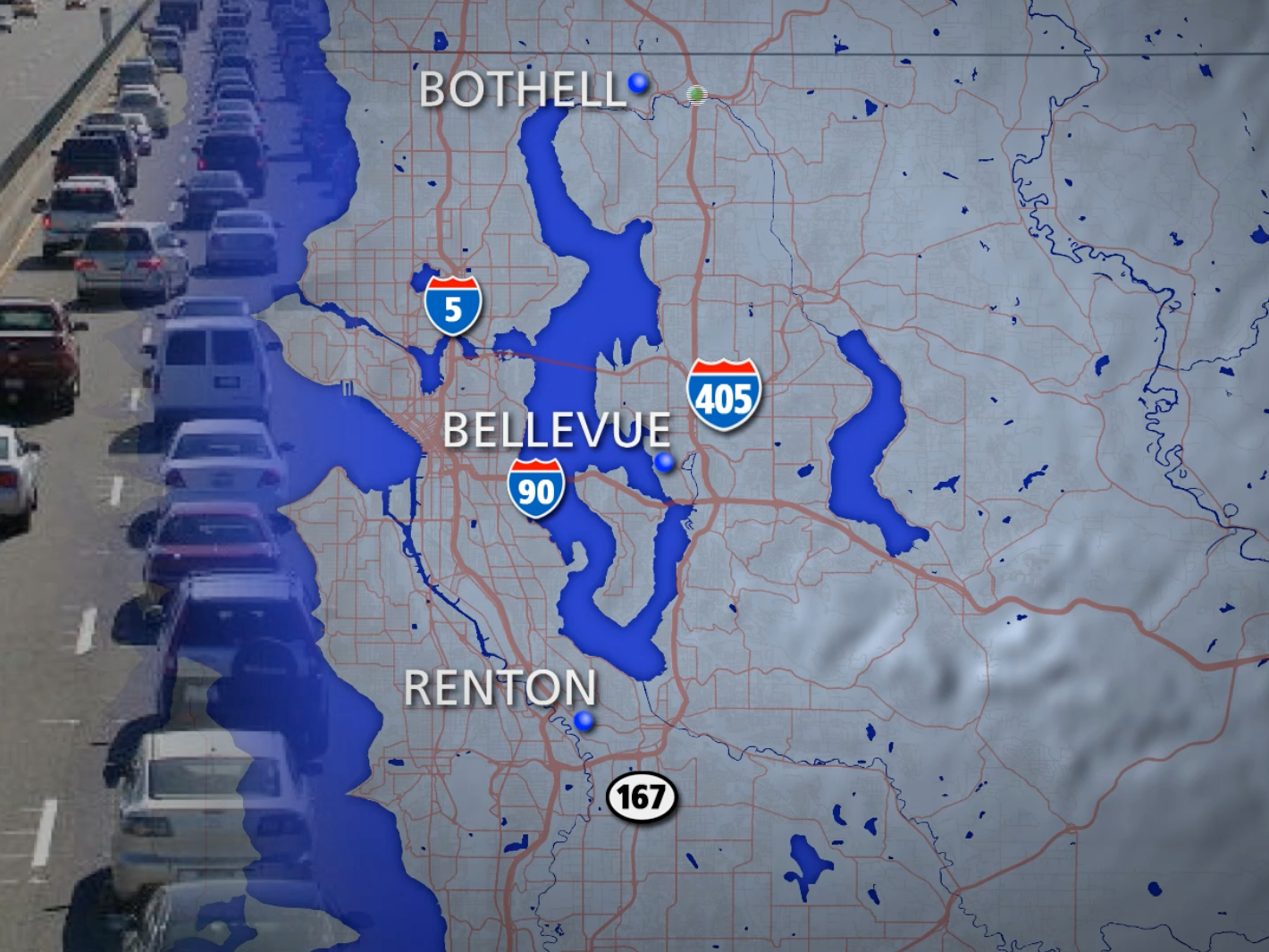 On-air News map for traffic reporter to explain the new toll system on interstate 405.
