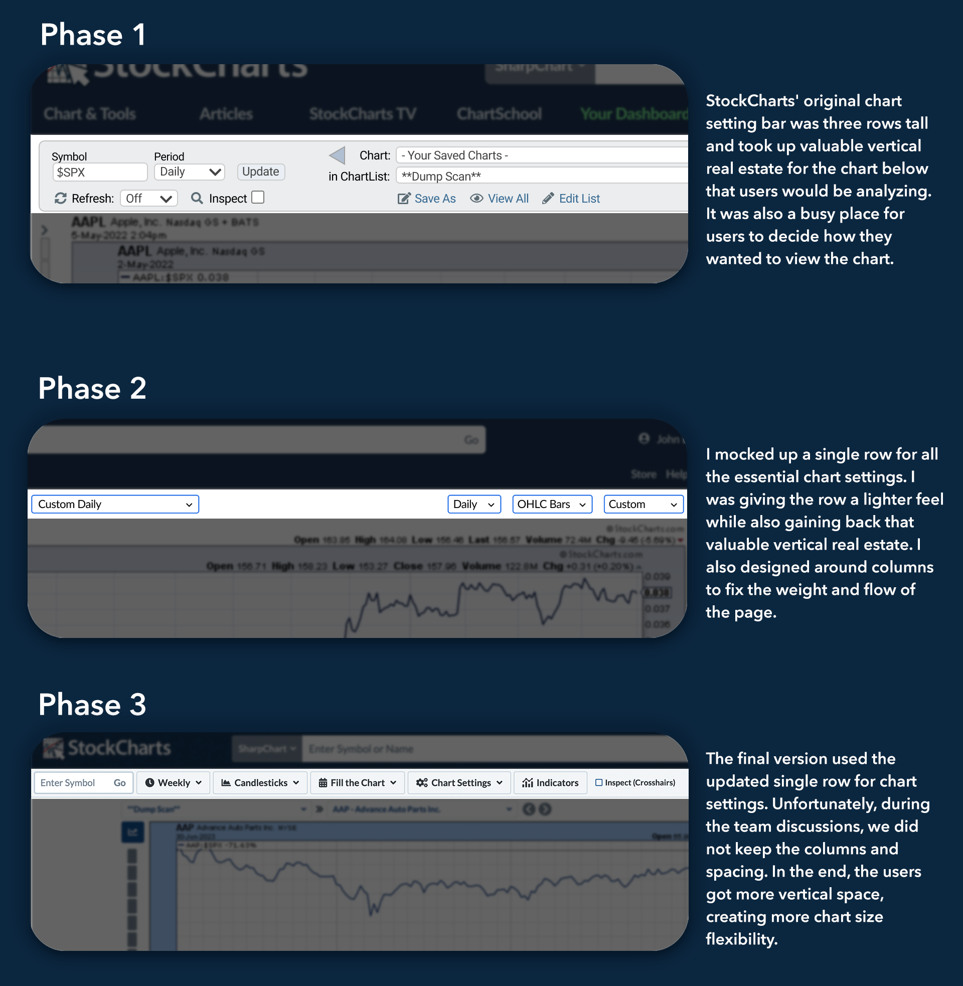 I collaborated on the design of the primary chart service of StockCharts with the CEO, VP, and lead developer. Creating designs in Figma and delivering a new UI for SharpCharts3 product release.